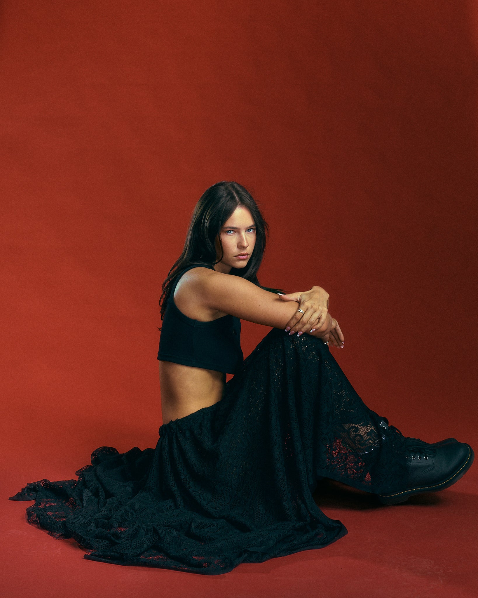 The FuzzTek Movement Skirt is what you get when you design a midi length skirt with perfect drape, breathability, and comfort. Featuring two layers of delicate lace and a woven elastic waistband that stays snug, offering the option to wear it high or low waisted. Bias cut to sculpt a flattering silhouette, it's a perfect foundation for an effortless look.